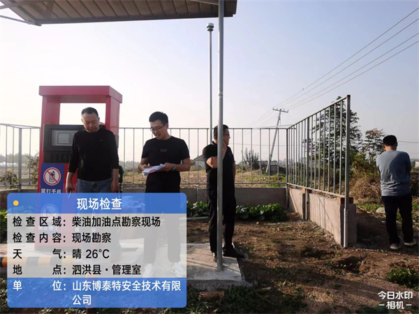 项目简介 | 该加油站占地面积约540㎡,设置埋地油罐1台(20m3S/F双层埋地油罐)、站房1座、罩棚1座、1台双枪柴油加油机(南侧加油枪已停用)及相关附属设施。柴油罐容积折半计入油罐总容积,油罐总容积10m³,依据《汽车加油加气加氢站技术标准》(GB50156-2021)第3.0.9条规定,该站为三级站。 | ||||||